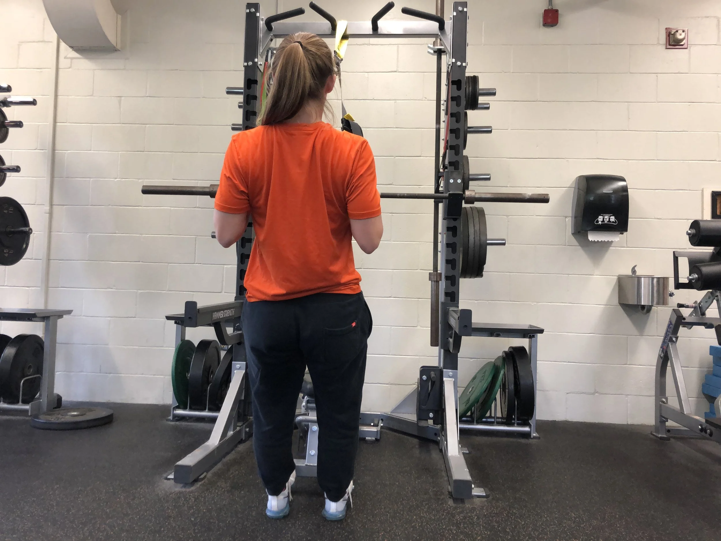 The squat is one of the most basic movements but so often it is done incorrectly due to the societal norm of sitting that creates poor posture and tight hips. Proper squat form should look something like this: Feet slightly wider than hip width, toes pointed slightly out, sitting the weight of your body back into your heels, knees are behind toes at the bottom, knees are driving out instead of caving in, core is tight and engaged, chest is up. Where a lot of athletes have a mishap is at the heel. In a full depth squat, the heels should remain in contact with the ground at all times.